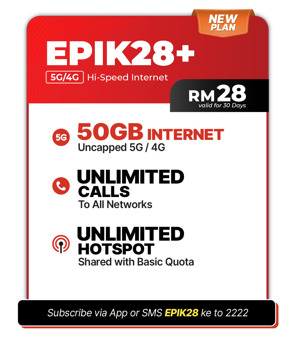 - Upon successful switching to the HALO EPIK Pack, all Subscriber’s existing services shall be forfeited along with any existing ‘Freebies’, internet plans, passes, booster plans and others. It is advisable for subscribers to utilise all available quotas (including but not limited to paid or free internet, voice, SMS) before switching to the HALO EPIK Pack.
